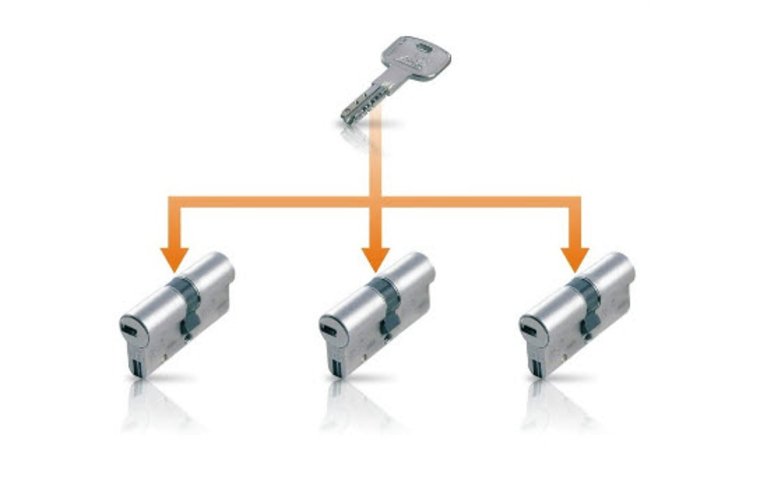 Master key czyli tzw. system klucza generalnego- umożliwia dostęp do dowolnej liczby drzwi za pomocą jednego klucza, przy jednoczesnym wprowadzeniu pełnej kontroli dostępu do poszczególnych pomieszczeń, przy czym w dalszym ciągu możliwe jest stosowanie kluczy indywidualnych.